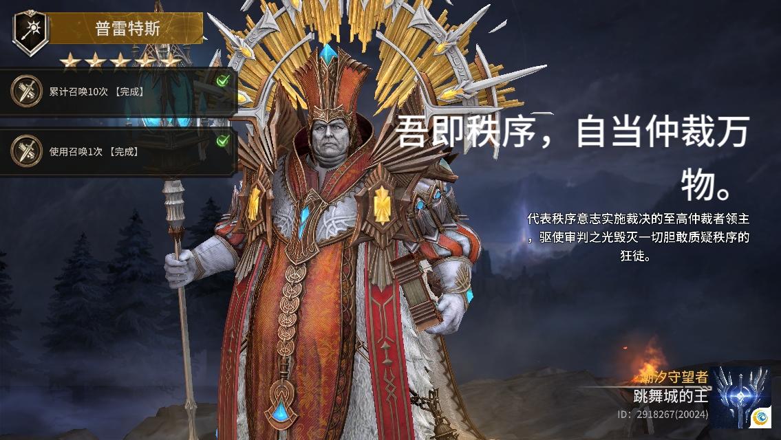 他从默帝斯沙漠的血沙中爬出的狡诈之徒,如今身披仲裁者赐予的圣铠。他可以为队伍提供巨量的回费。全新五星传说英雄「绝杀之影·凯恩」即将登场!「阵营」至高仲裁者/北境王座「定位」战士◆新英雄凯恩会作为常驻英雄进入到本期及后续的远古召唤卡池中。————————————————————潮汐守望者「双旦许愿」版本现已开启!