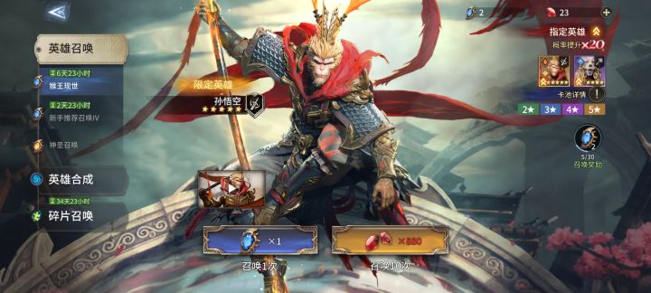 大家都知道孙悟空拥有最顶尖的单体爆发能力,目前版本可使用的英雄选项较多,孙悟空是否还值得抽呢?接下来给大家带来孙悟空强度测评及抽取建议,小伙伴们可以做个参考。一、孙悟空简评孙悟空刚出的时候是人权,现在大概在T1+梯队。限时卡池200抽必出,获取后可以帮新手玩家快速的冲击公会龙分数,加快发育、快速获取资源。除了公会龙以外,在主线、泰坦、虚空裂隙、对单竞技场(非顶级)等模式也能打出较高的单体输出。