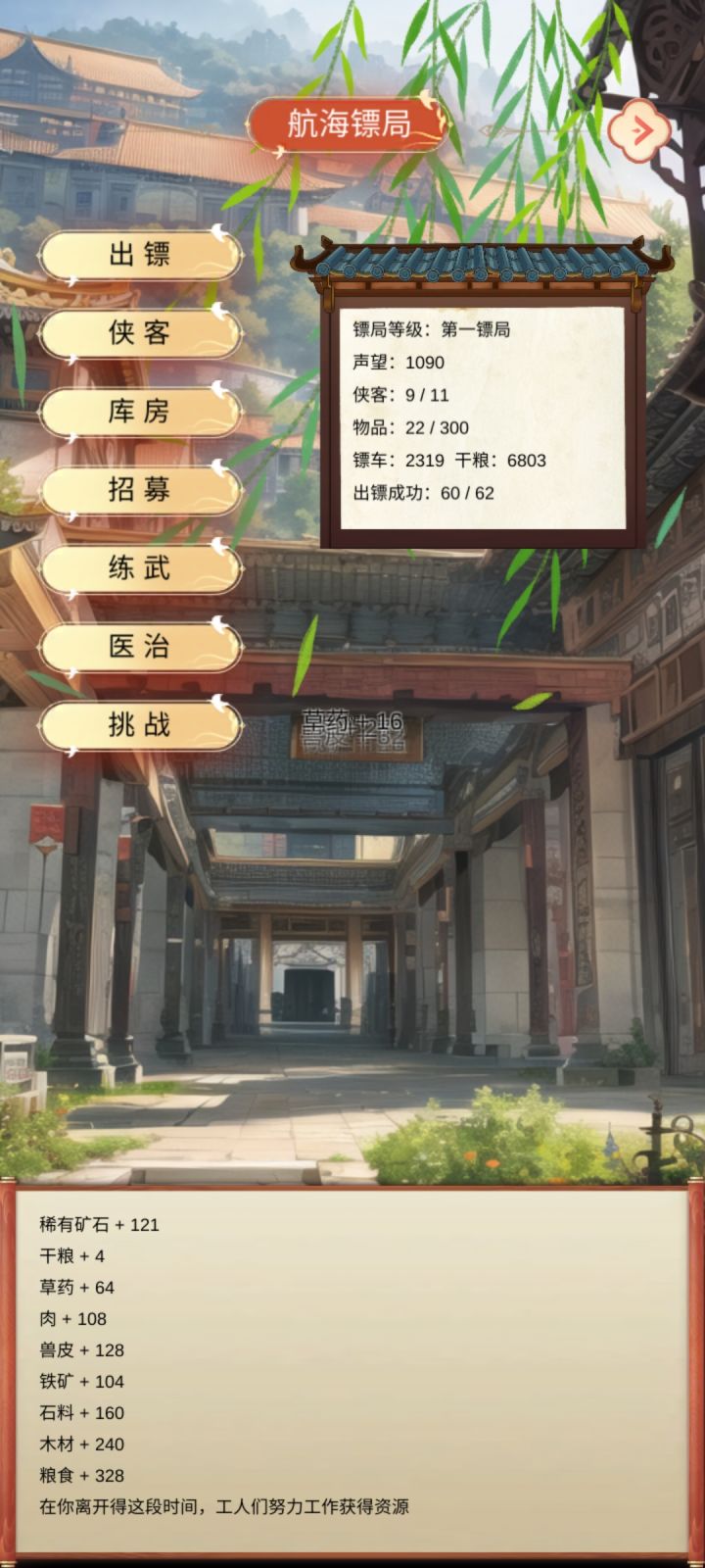 奇迹 : 并不是呀,钱,武功,装备主要来源就是押镖呀,不过这游戏太容易毕业了,先刷新出来一个100攻50防的,最好带群攻的镖师(群攻技能也可以押镖出),然后就用这一个押镖升级,先无脑升级到60级左右,很快的,多10级就压更高一级的镖。然后就可以带一个猪脚(带医疗)和一个医疗兵升级了(一个单体医疗一个群体医疗),等这两个升到40级以上就可以刷最高难度镖车了。我这个是最简单通关镖车的办法