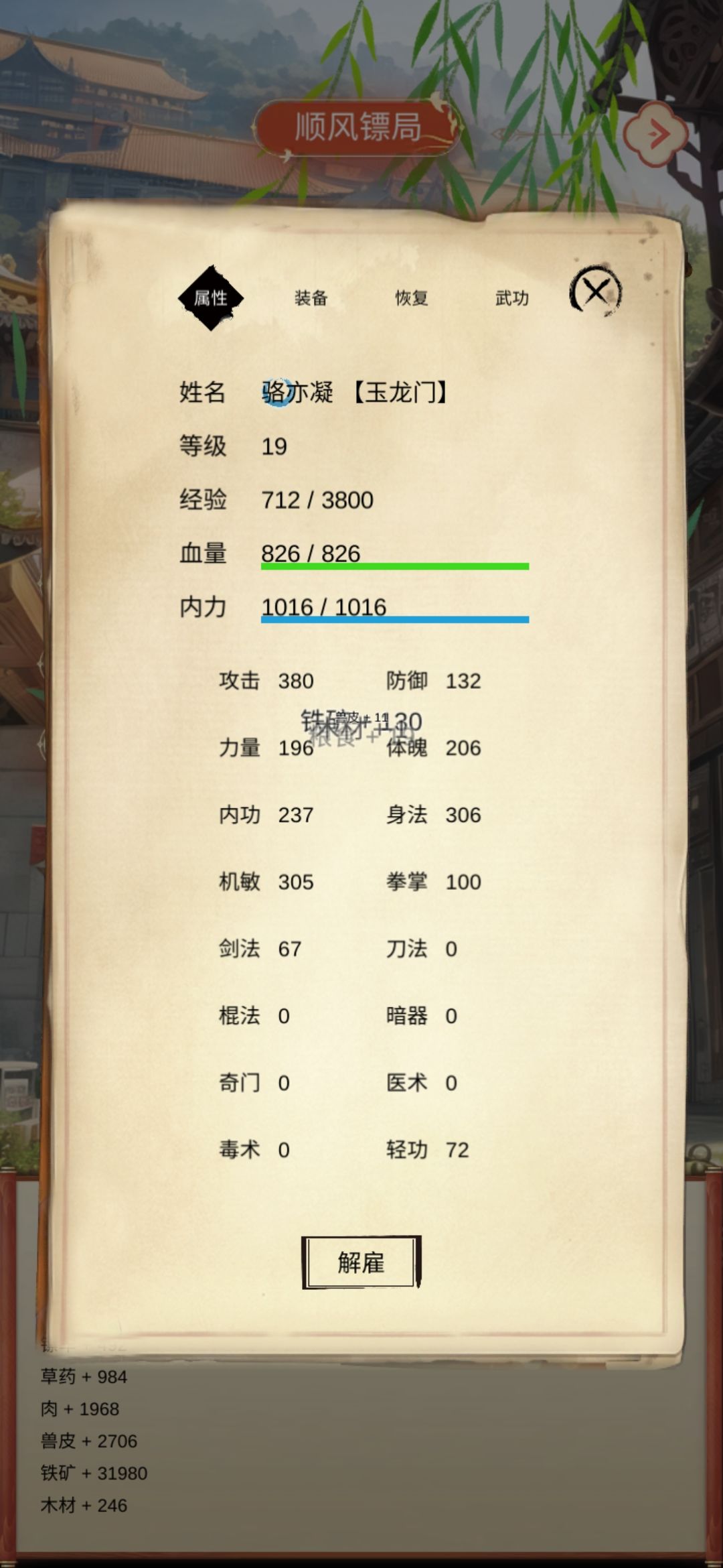 一、废话 这门派好多啊,然而我到现在没看见一个群攻的侠客,真羡慕别人家的侠客,写累了,歇会 ----- 突然发现作者是上次那款格斗游戏(划掉)的作者诶,哈哈没想到又遇上了。这次的文字游戏真的很好哦,加油。 我继续抽卡,目前已经到五个重复两个的程度了,等重复五个我就开始运镖(什!?)目前来说,在低位池子里,感觉最推荐的是苏水青和甘笑旋,这两位是全体攻击的。其次就是洪白秋和申梦香啦,面板还可以。剩下的
