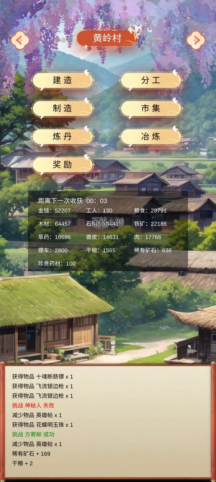 玩了三个多小时建造全满,等级40,不能理解的是珍贵药材有什么用?我只能造那个低级回血丹,到现在那个丹基本是废品了,奶一口都能抵吃十几个丹了,还有就是那个挑战不知道设定就是那样还是怎么样,打的时候有40级的有80多级的,但是得点进去才能知道,就不能显示一下等级吗