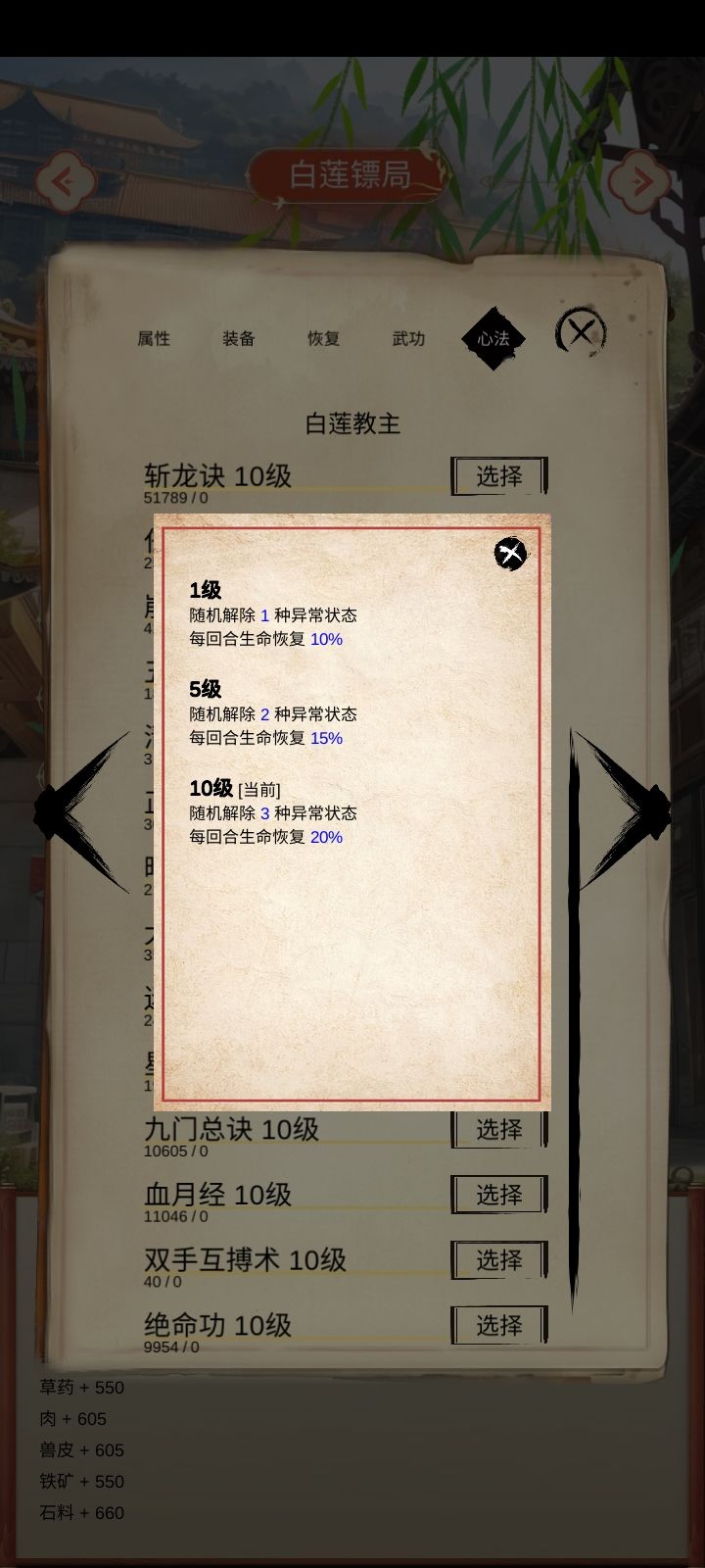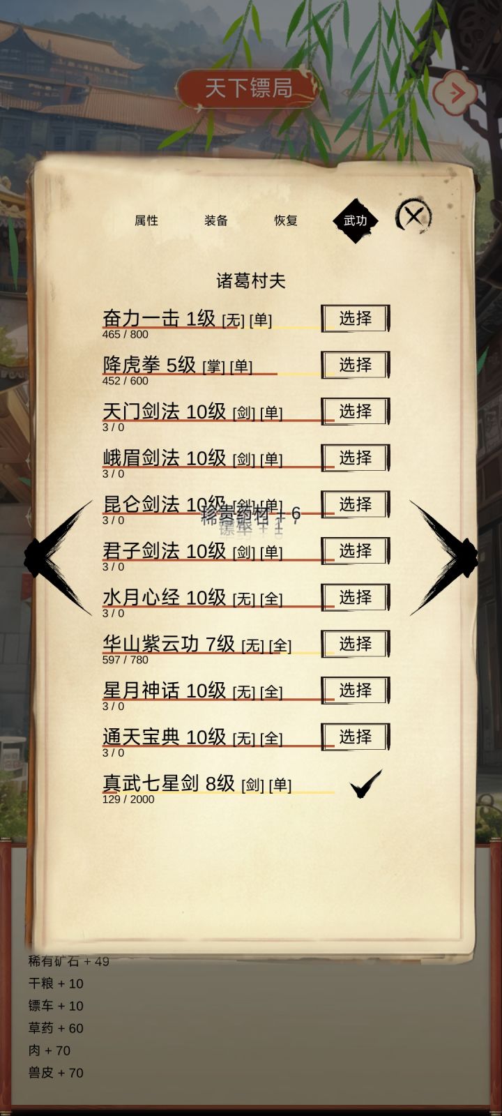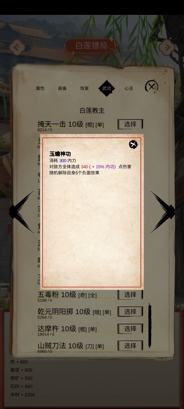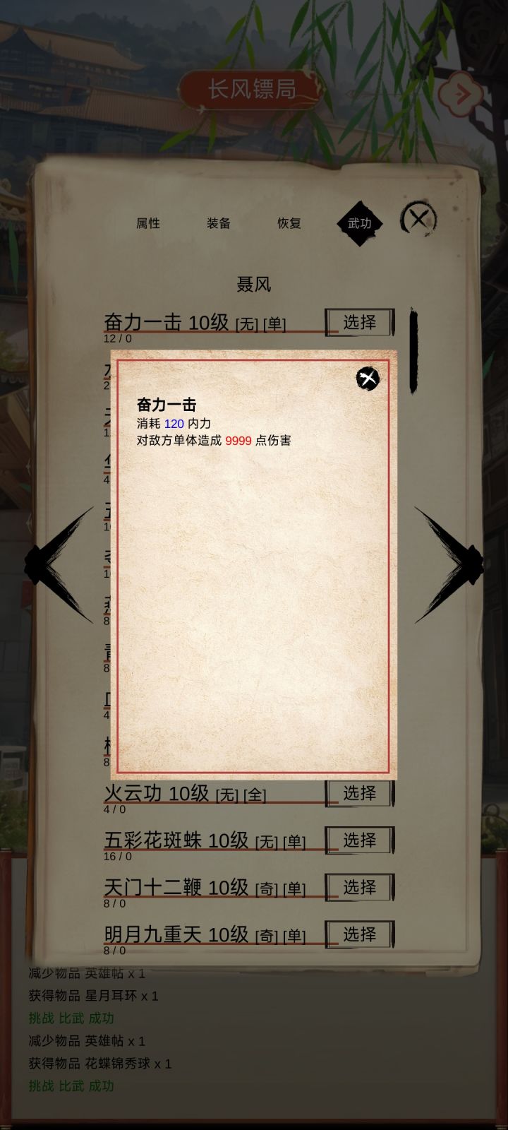 功法大全,能刷到的全练满了,除了几个女性功法没法学