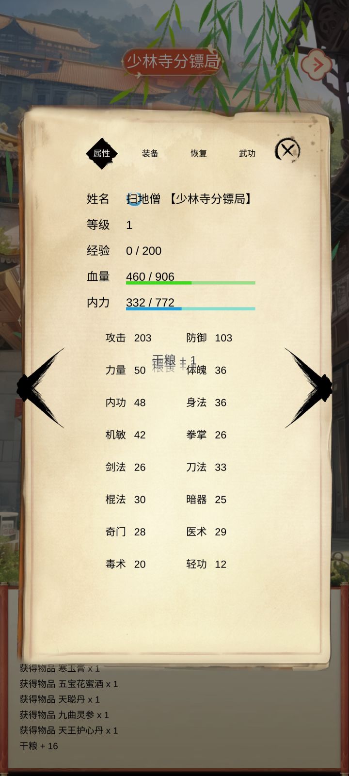 功法大全,能刷到的全练满了,除了几个女性功法没法学