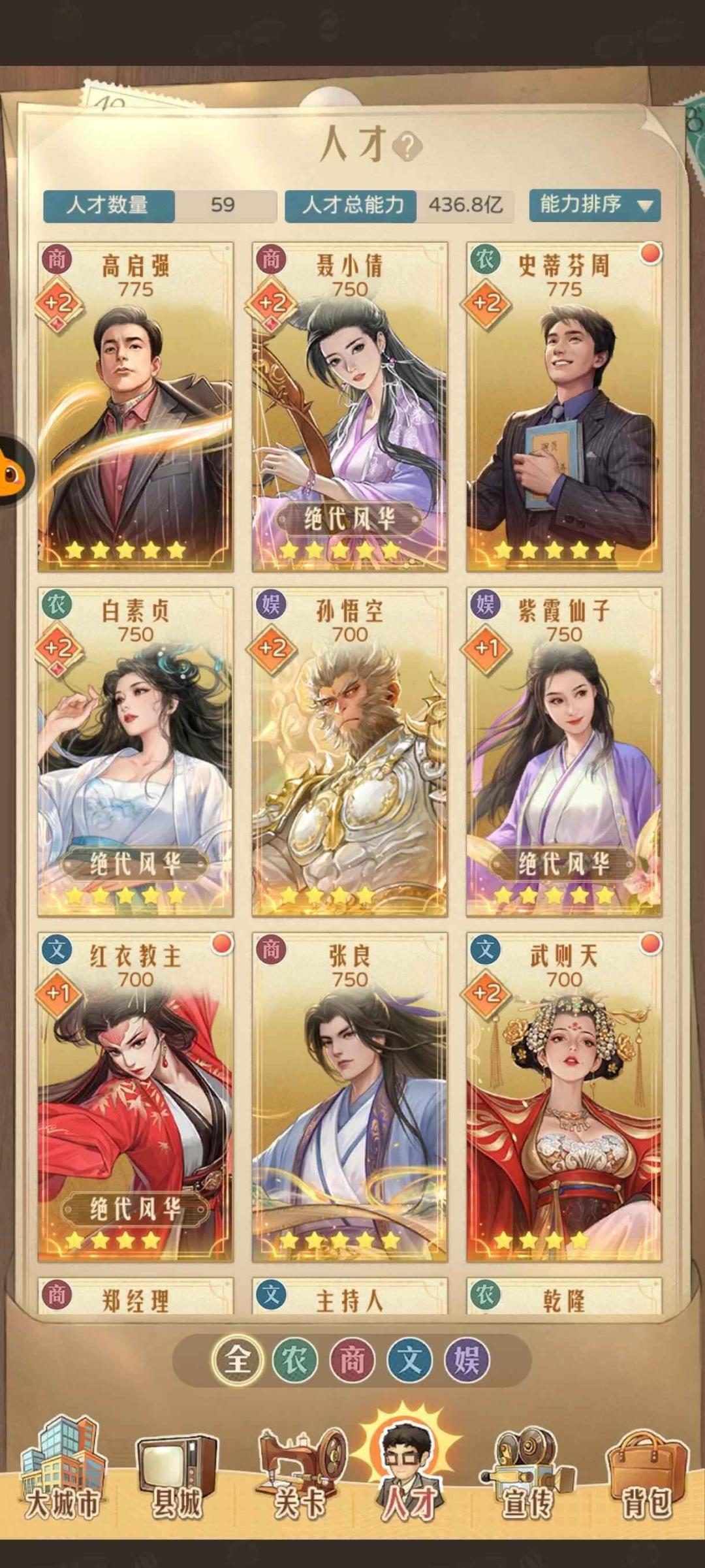 这一part主要讲人才部分 先说本人的情况,开服9天,氪金330,收入20w,应该算勉强入门了,写一篇新手攻略给大家 1.主要人才培养选择 大多数玩家资源都是有限的,培养人才方面可以主要选择一位进行培养。 氪金玩家优先考虑主要培养高启强,高启强只有氪金才能升级为珍贵,且四个羁绊艺人皆需要氪金。 高启强是需要氪高启强基金、英姿、高启兰(198元限时累充)以及未来的陈书婷活动(约800元可以拿下)