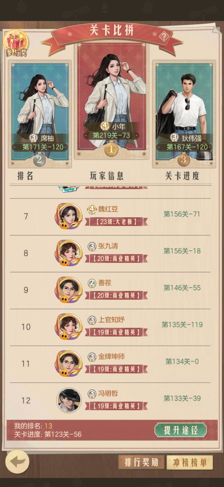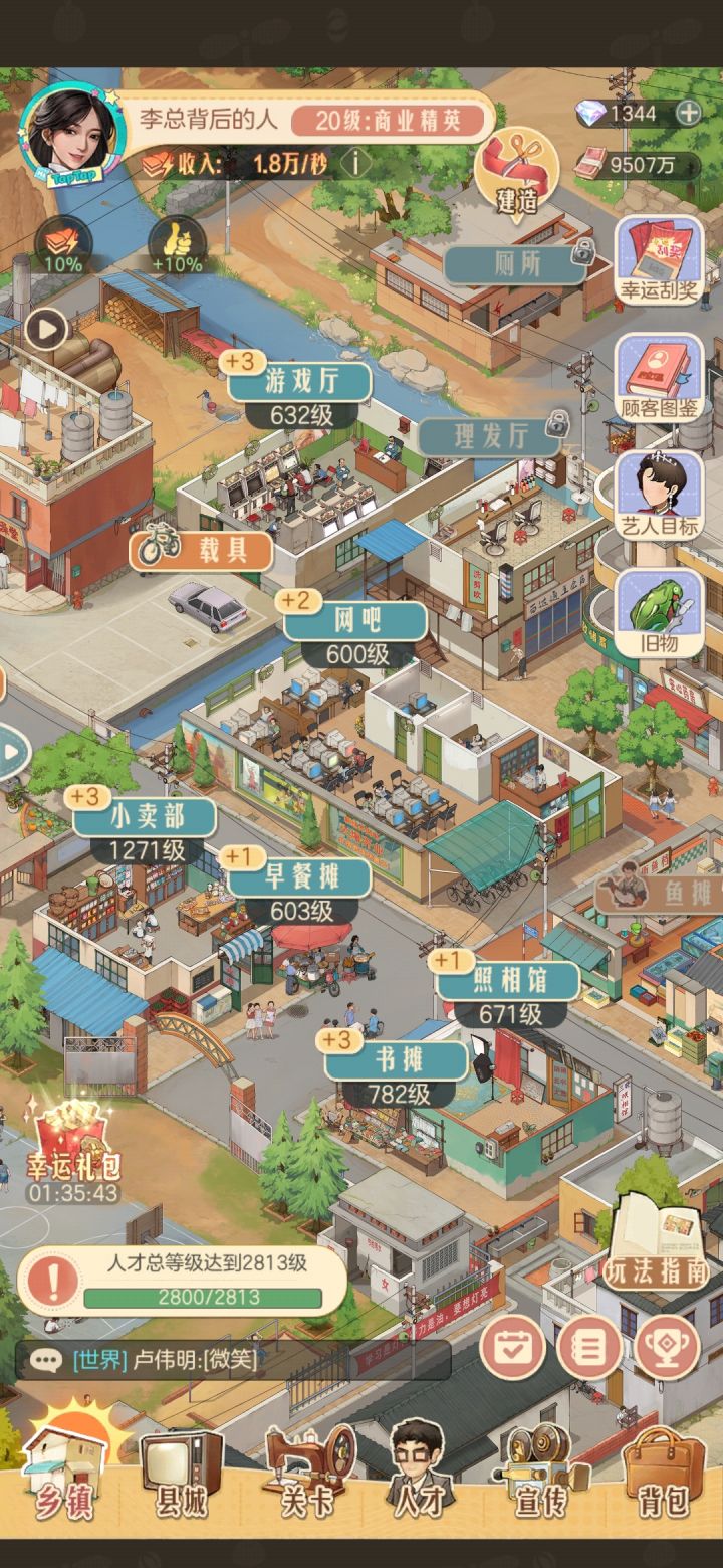 开服第二天就了36元,现在秒入1.8w。首先新手玩家记住钻石一定不要抽奖,抽奖没有意义,抽奖里面的人才卡基本上活动个过关是可以达到的。第二点:吃席不要舍不得吃,吃席币可以兑换很多道具比钻石有用,吃席50次可以获得艺人3:兑换道具优先兑换火车票其次升级道具,然后财富经,小时卡分钟卡没必要兑换4:0氪微氪玩家第一个一定要换郑经理艺人换海燕,有羁绊加成,主玩培养她两!5:关卡一定要保证跟上本服玩