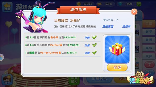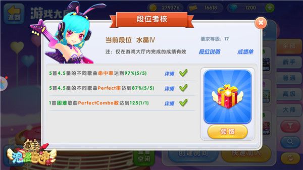 《浪漫音速》段位统计 5%的人上了水晶段位