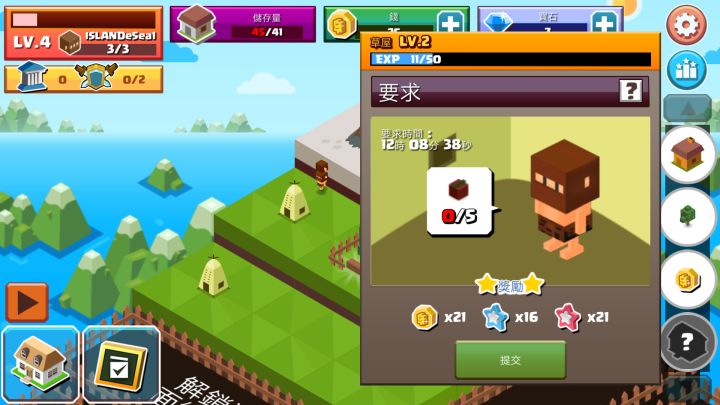 刚开始玩,每次等任务都要2分多钟。我发现每次房子造好后任务是直接刷新的,于是。。。我就造一个15块的房子房子造好后任务一定是小麦于是我交掉小麦赚15块,然后拆了这个房子之后就重复上面的操作,造花费15块与小麦的奖励抵消,我们还可以过的拆房子的10块。这一套操作只要20秒,比等任务来的快多了。而且收获小麦时还有几率得到金币。