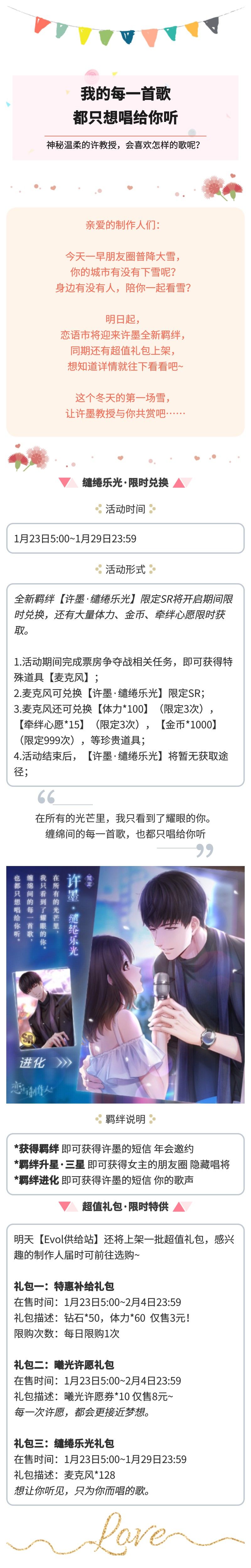 【活动】许墨全新羁绊登场|我的每一首歌,都只想唱给你听