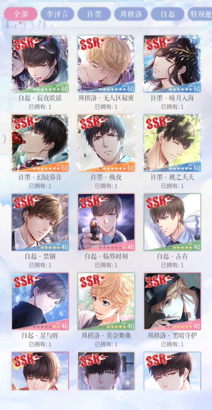 今天无意中看到一个帖子是玄学抽卡的,所以我按照那些方法试了一下,结果发现全都不适合我,于是深夜自己不死心又上线试了一试,结果欧到爆!我自己都不敢相信的那种!因为是有规律的,所以就想分享给姐妹们,希望姐妹们试了都能像我一样脱非入欧!先发一下图证明下自己,我是一共抽了55发,出了5sp+1ssr,4张活动都出齐了,还多送了一张许墨的(基本是我想要哪个就来了,没用这个方法前抽卡一直重复出一个人,哭死)