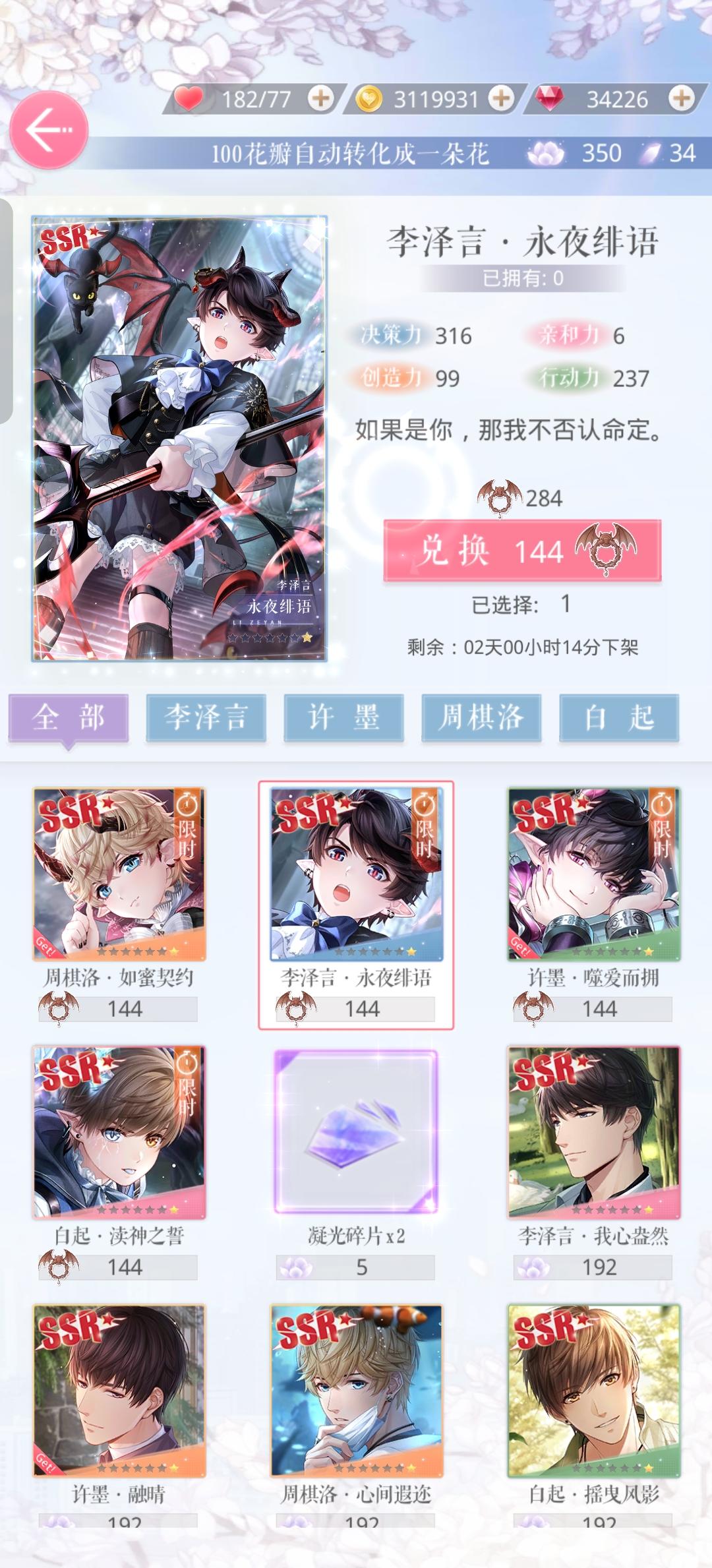 于宿命的呼唤中上前,在彼此生命中点燃火焰。活动时间:10月28日更新后~11月7日23:59许愿树限时魅魔主题SSR羁绊1.活动期间,使用【星河许愿券】购买【异域门环】进行许愿,有机会获得【周棋洛·如蜜契约】、【白起·渎神之誓】、【许墨·噬爱而拥】、【李泽言·永夜绯语】等珍稀SSR羁绊。四张活动羁绊期间限时概率UP。2.活动期间,也可在许愿树商店中,使用【异域门环】兑换本期活动限定羁绊。3