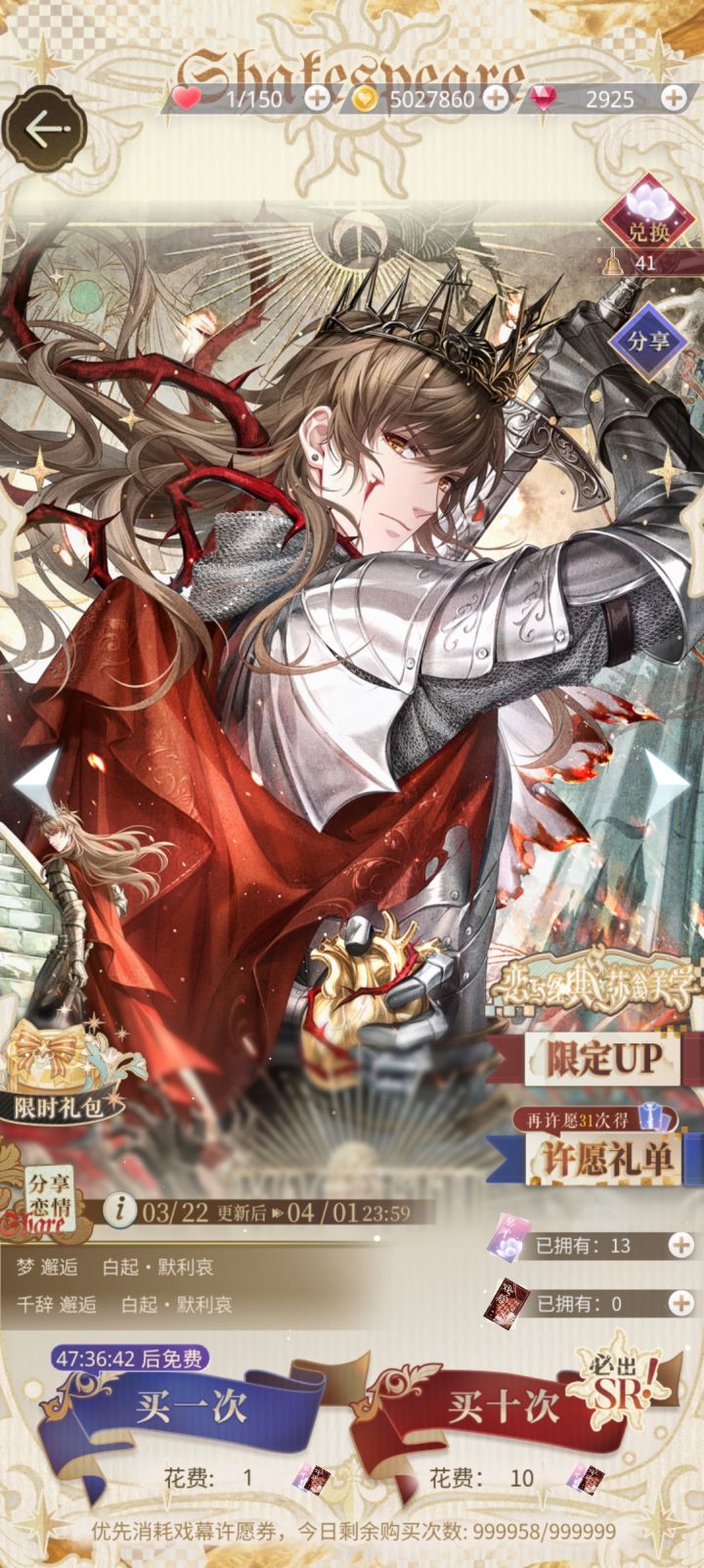 码一个签到(恋与经典莎翁美学联动)