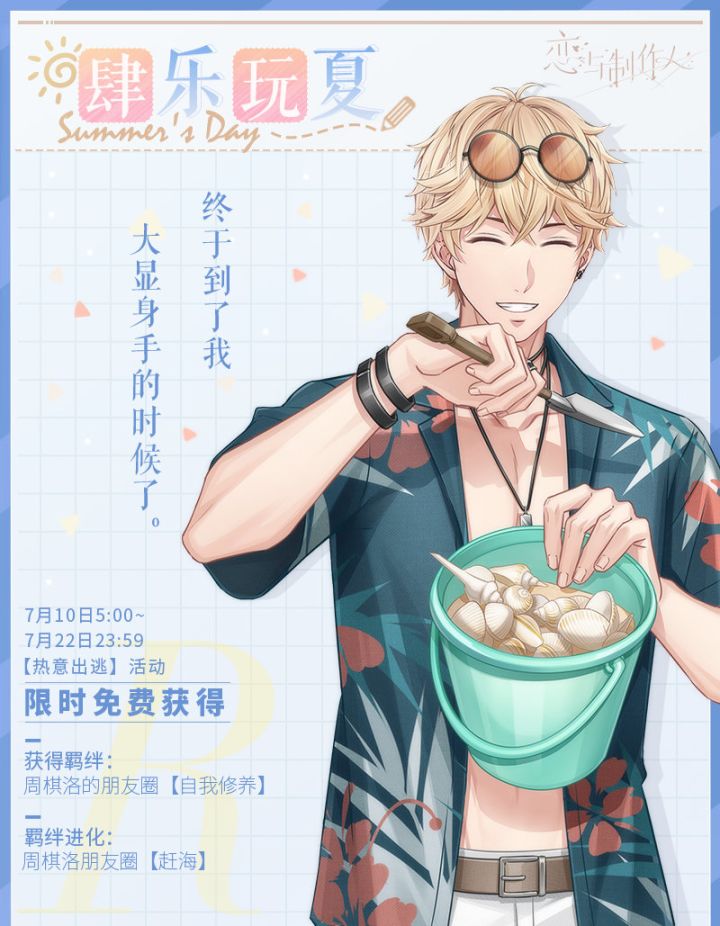 坠入茸毛陷阱,寻觅恋爱气息。 #恋与制作人# 奇妙咖啡厅,PV公开。 「奇妙咖啡厅」限定SSR羁绊 参与主题活动,收集曲奇,自选兑换五张「奇妙咖啡厅」主题SSR羁绊与配套服装。 更有自选【耳朵配饰】&【尾巴配饰】礼盒,等你收集解锁他的萌趣打扮。 [星星]「绒趣发现」与他来一场可爱巧遇 收集与他的甜蜜事件,解锁趣味互动和专属手账贴纸奖励! 5月31日~6月9日,萃取甜蜜香气,交换浪漫印记