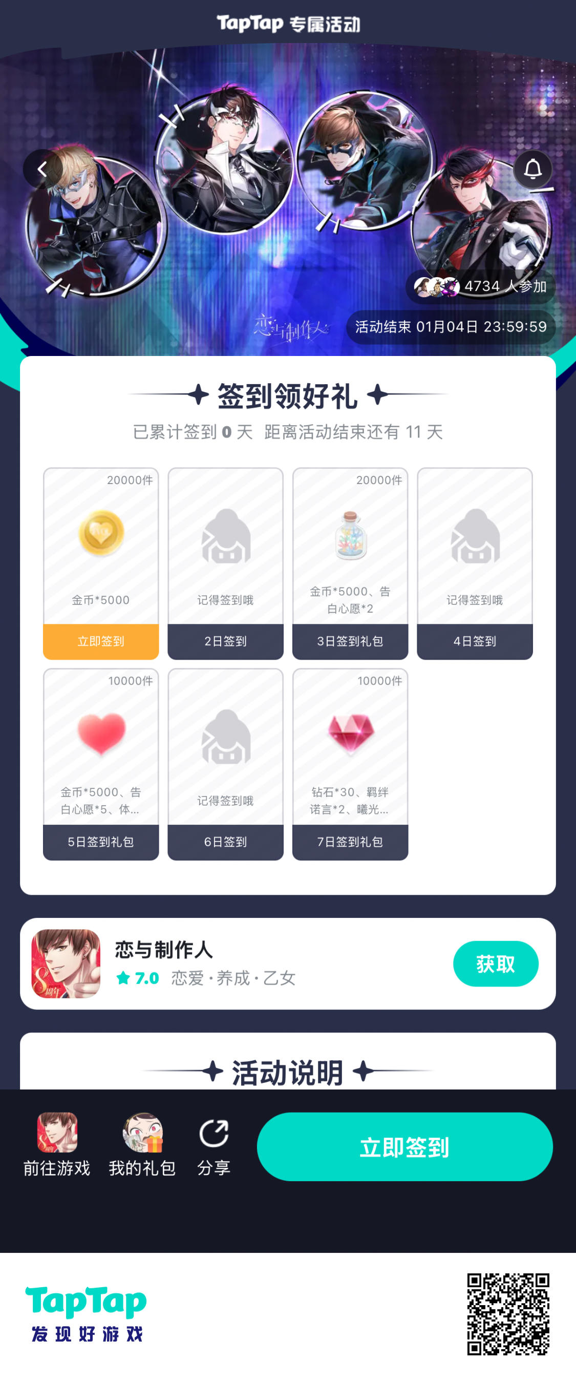 恋与制作人-《恋与制作人》双旦版本签到活动https://www.taptap.cn/events/game-sign/yqwqwnfp?share_id=db56568be201&utm_medium=share&utm_source=copylink