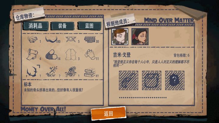 通关图镇楼______我玩了七八次了,饿死,病死,最惨的死法是把保姆给气跑了……磨了四五个小时才算过关,但是由于过于兴奋少交了一个任务。开始bb正题警察叔叔(吉米)自带电棒,注定打架是把好手,第一天直接飞奔汽车旅店救保姆(10格伙伴)。吉米捡完(6格)零件啊 (只要废铁,万用组件)就回家,这时候家里保姆就造厨桌,书桌(二选一)吉米一到家,保姆立刻再回一去汽车旅店,药和木头、吃的还有棒球书!