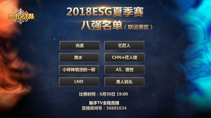 在上周六(6月23日晚),经过一晚上激烈地角逐,《小小突击队》esg夏季赛的8强战队出炉,让我们恭喜这八支优秀的战队!之后的比赛更为精彩!关注比赛直播间,观看比赛还有更多好礼等着你!