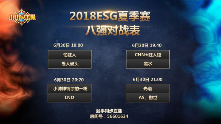 八强对战表已出,4强会是谁呢!本周六晚19:00,8进4比赛正式打响。触手直播,解说猪队等你来!触手房间号:56601634