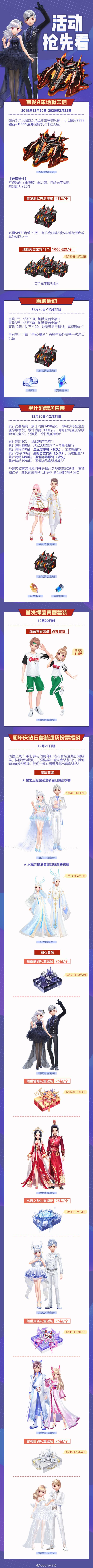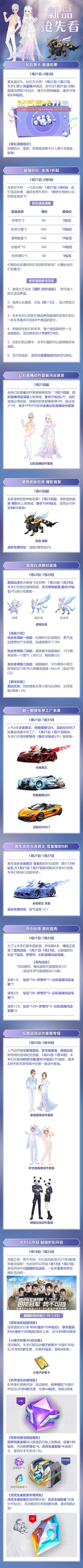 钻石周卡,累充最多可领630钻石! 全新幻彩晨曦梦幻首发, 实力宠物白泽回归,新皮肤白泽 傀影上架商城~ 人气A车投票返场赛车梦工厂, 时空宝藏开启投票返场动作套装专场! 冠军福利周超值折扣活动不容错过!