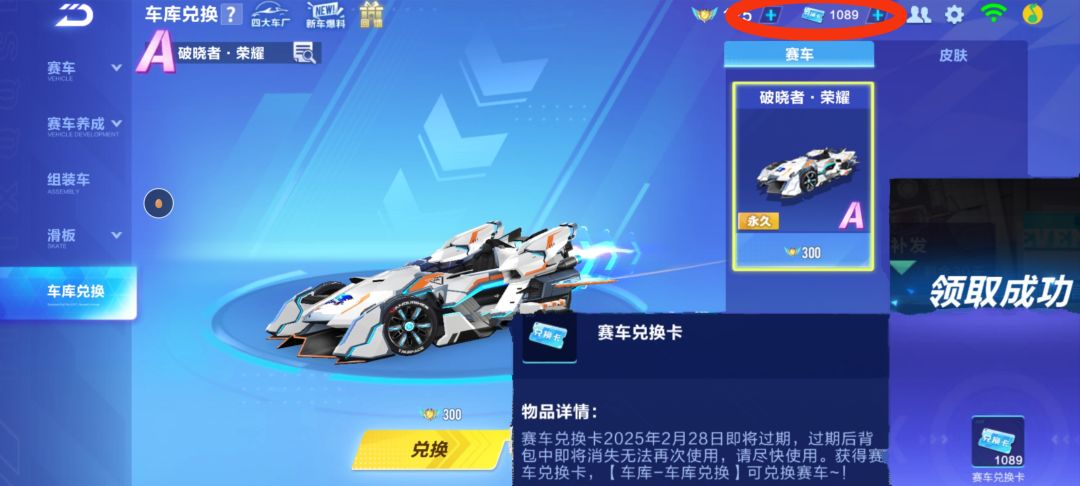 物品详情: 赛车兑换卡2025年2月28日即将过期,过期后背包中即将消失无法再次使用,请尽快使用。获得赛车兑换卡,【车库-车库兑换】可兑换赛车~! #发现好游戏 #吃瓜爆料 #浅评一下 #游戏安利 #游戏推荐 #游戏杂谈 #游戏讨论 #游戏资讯 #QQ飞车