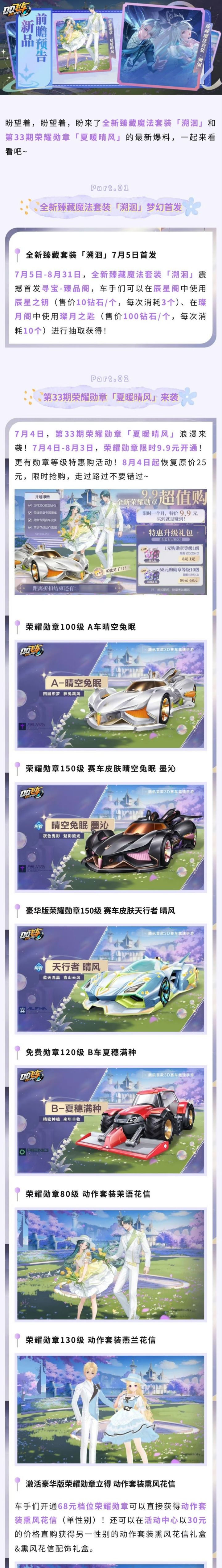 🎐7月4日「夏暖晴风」荣耀勋章正式上线,9.9元超值购限时开启!主题A车及限定皮肤,宠物全都有!还有免费B车、全新主题动作套装等你带回家~夏日盛典即将开启,车手们快快上车一起浪~