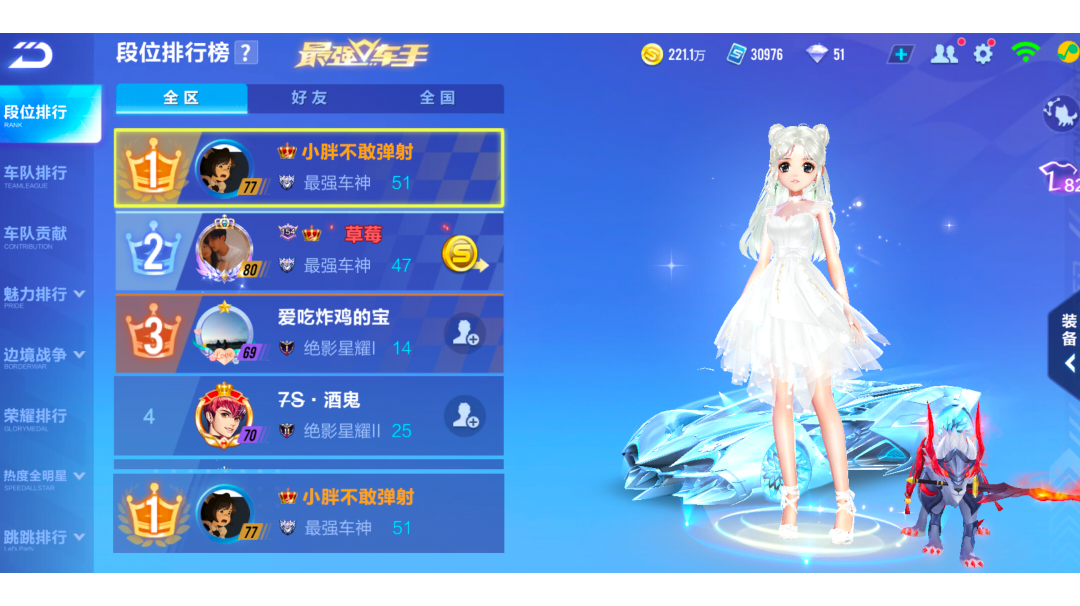 今天下了QQ飞车抢先服,用着免费送的A车跑了几个图,轻轻松松就把我正式服的记录破了,那好歹也是我保持了很久的记录了,只是用了下冰魄就破了,现在真是只要有个好车再加点技术就能上车神了,虽然我段位最高才星耀2😂