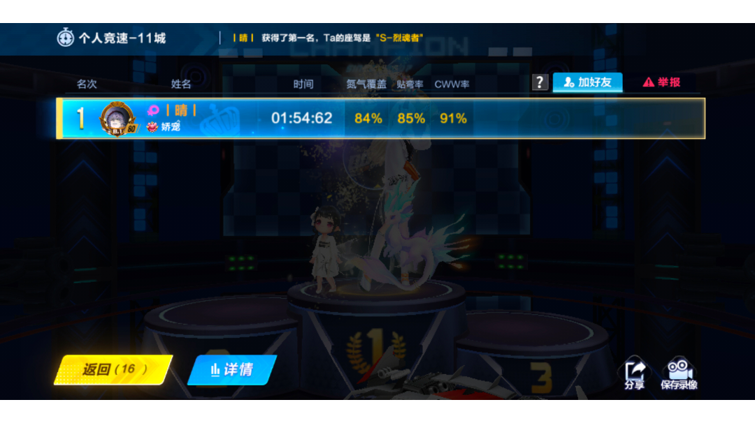 车辆:猎魂者一阶觉醒 宠物:彩虹之光 第二圈细节有点裂开挺可惜的不想刷了,强度的话和这期勋章车差不多吧。毕竟我极限都是可以53的