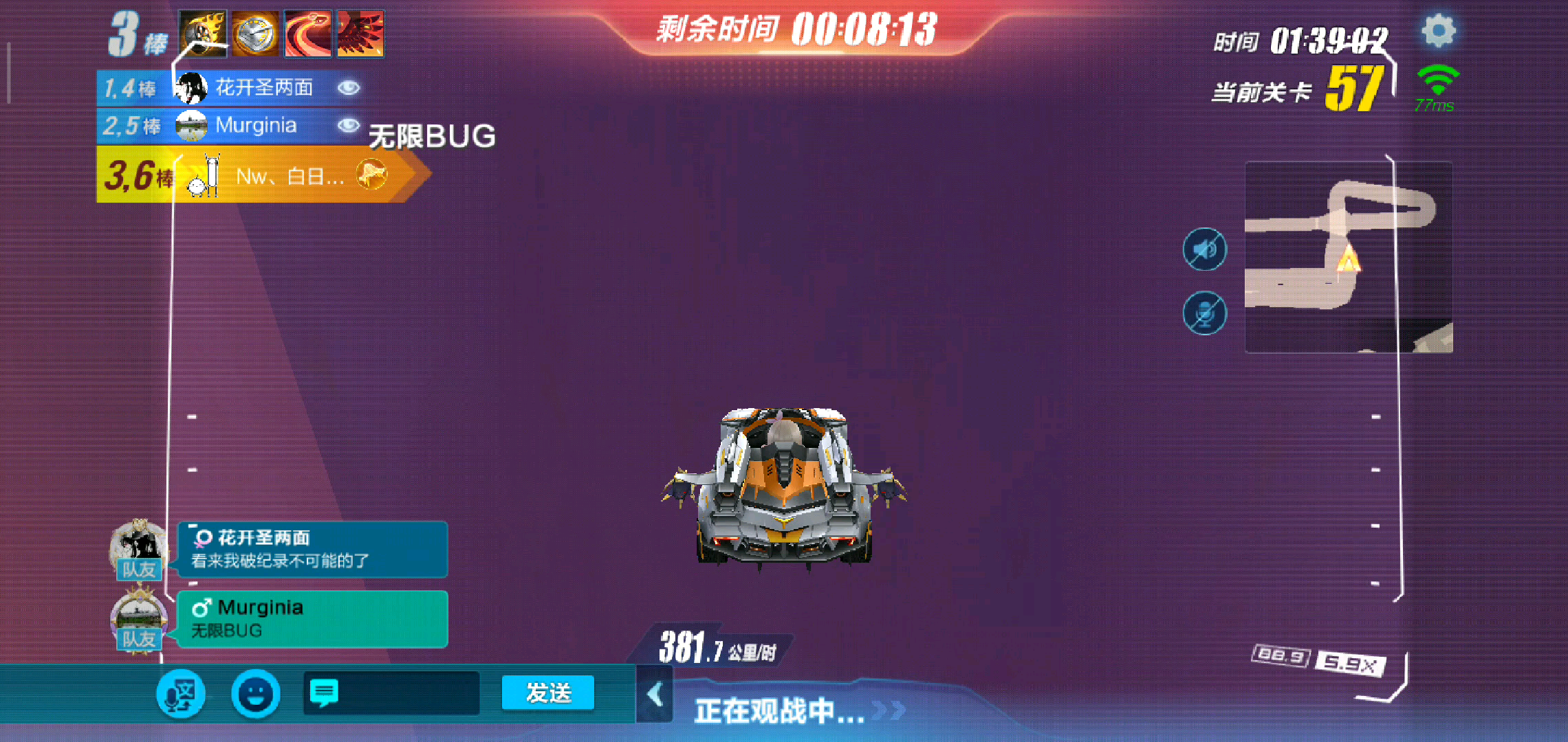拉力排位就是个半成品,一局n多bug。排 队友第一棒那个近道复位回家。 第二棒队友猎魂者在喷气是漂移卡住,卡到这一棒完。 我第三棒复位复到一个神秘空间,没有关卡关数标志,但有时间限制,开飞机就无限向前。