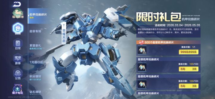 以为卖99没想到是899卖这么贵,看来还要等几个月才能开上这个机甲了。