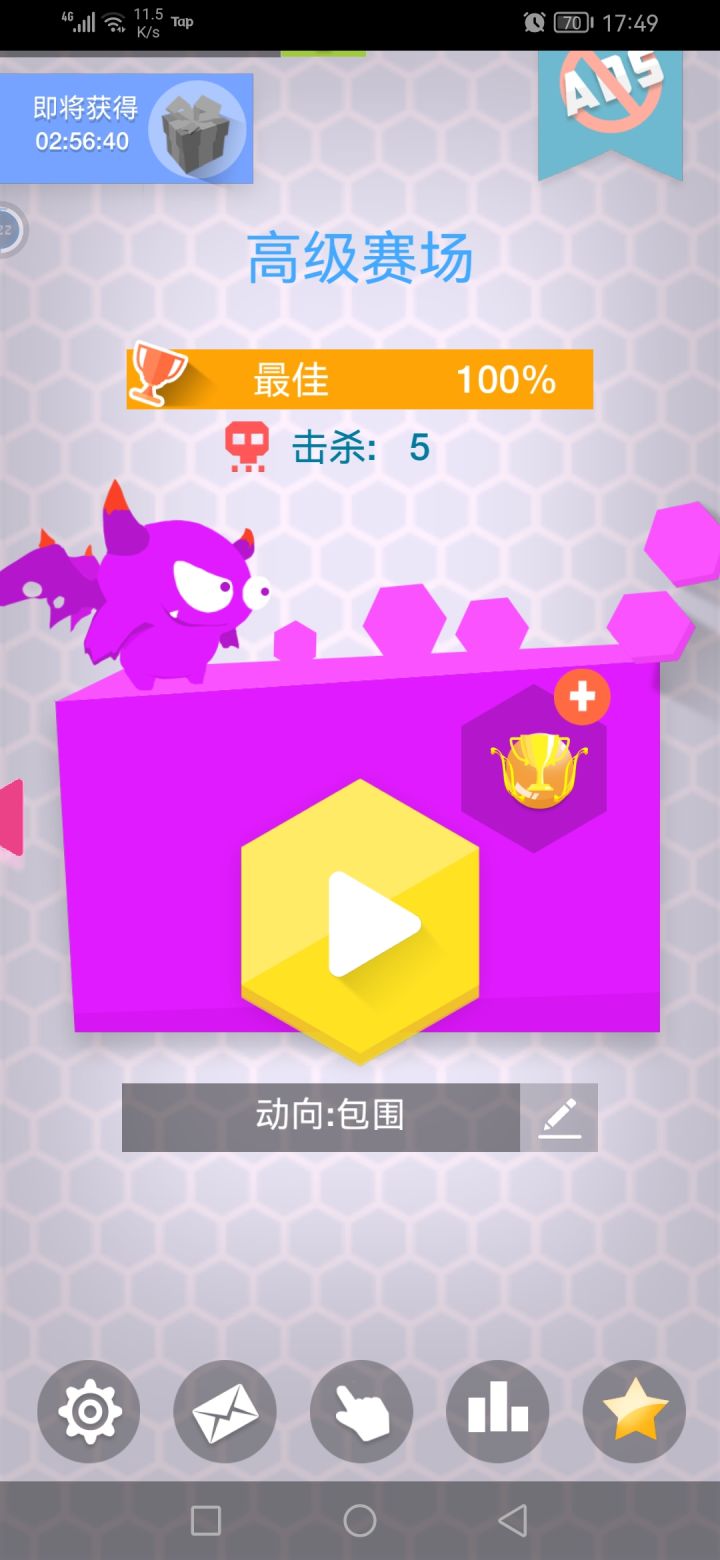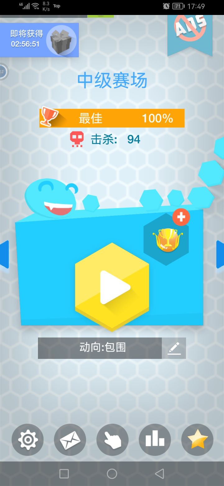 一个小时打完300%真累啊,初级赛场初速度最低可以直接几局然后围剿了……中级赛场打了10多把围剿,高级赛场一次围剿……属实:初级赛场—初速度:1%,中级赛场:初速度:3%,高级赛场:初速度5%,以前的道具模式100000金币购买进入被后续更新删掉了😂,针的玩玩不想玩了……