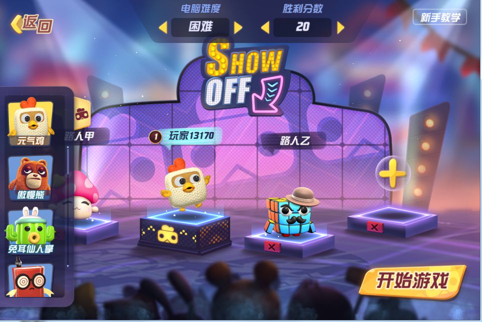 新解锁了小游戏,想先自己单机练下手?网络不稳定,只想单机过把瘾?单机模式可以满足你的需求! 在单机模式中,玩家可以与AI进行游戏,熟悉新游戏,尝试新套路。 玩家可以自行设置AI难度、AI数量、胜利分数。 玩家可以从自己已解锁的游戏库中选择1-3个小游戏进行练习。玩家可以不必选满3个小游戏即可开始练习。 单机模式的结果不会影响玩家排位积分和段位,也不会计入玩家的战绩统计。