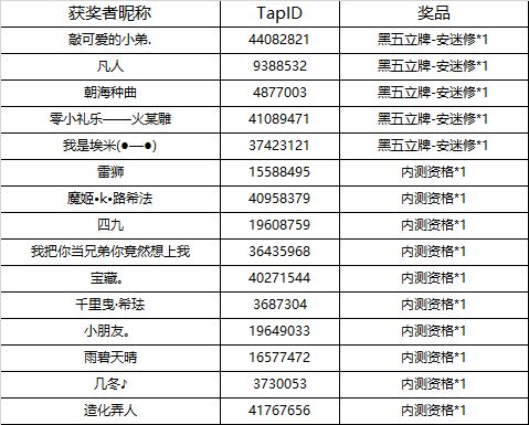 活动获奖名单如下:恭喜这些参赛者~请各位主动添加裁判球的QQ:3312376225 领取本次活动奖品~领奖时间:5月28日—6月11日添加裁判球QQ时请备注【安迷修】,裁判球会在领奖时间结束后统一发放奖品!未获得奖励的玩家尽量不要添加裁判球哦~------------------------------------------------------------------------