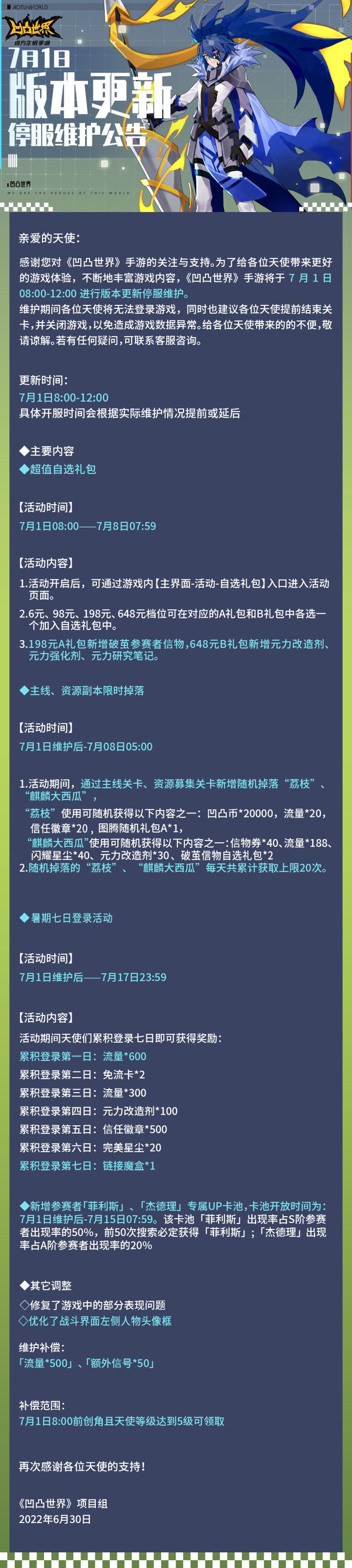亲爱的天使,非常抱歉地通知大家本次临时停服维护开服时间将延迟,具体开服时间还请各位关注公告。开服延迟补偿将在本次更新结束后发放,感谢天使们的耐心等待!