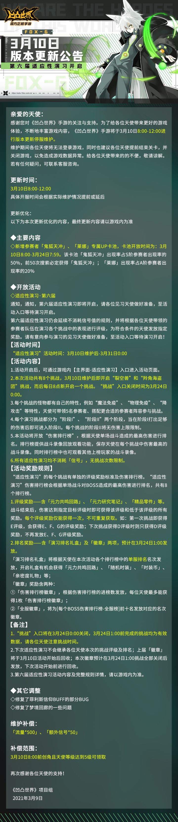 《凹凸世界》手游3月10日版本更新停服维护公告