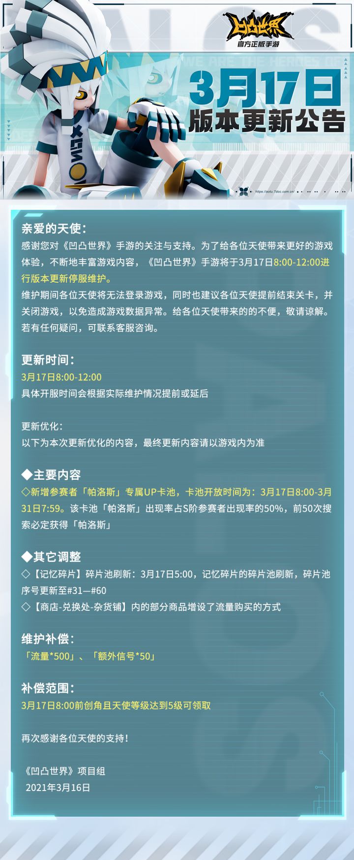 《凹凸世界》手游3月17日版本更新停服维护公告