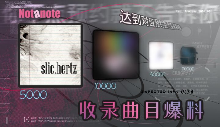 两天5000预约!Notanote非常感谢大家的支持!于是——酱酱~ 这里是预约里程图,到达对应预约数即可在近期的单曲更新中追加对应曲目!本次里程所追加的曲目为:•「slic.hertz」by Sobrem嘿嘿下一首是什么呢~