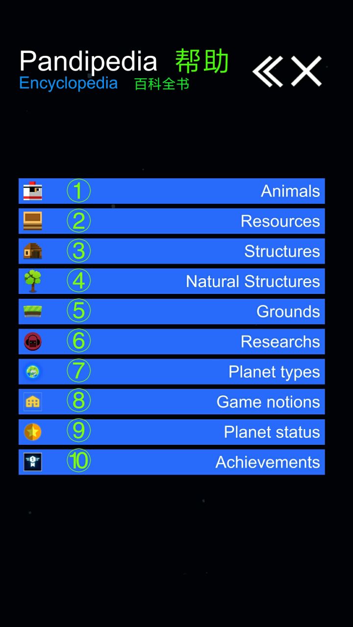 转载请标明来自TapTap及作者谢谢转载请标明来自TapTap及作者谢谢转载请标明来自TapTap及作者谢谢我将会翻译帮助里的东西也会做出攻略,如果有什么问题也欢迎回复喔,因为楼主水平不高有些地方只能用百度翻译,见谅目录1.动物 2~21楼2.资源 29~39楼3.建筑物 42~44楼4.自然现象 46~47楼5.地形 49~50楼6.科技 55~58楼7.行星 63~90楼