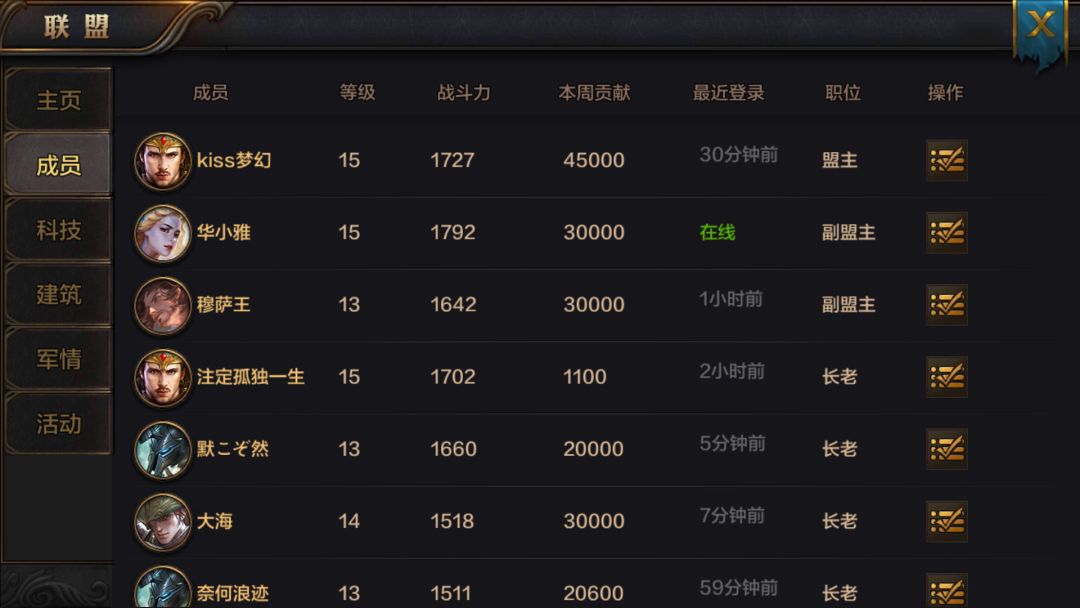 玩一个游戏最重要的是什么?我也曾纠结过这个问题?直到在王朝中才发现,一个游戏最重要的就是一个“家”、一群志同道合的人... 在王朝中: 联盟就是这样一个“家”,有了这个“家”,我们才会有归属感! 玩家建造大使馆后,可以加入或者创建联盟,加入联盟后可以获得一系列增益; 联盟中可以捐献资源获得贡献,每次贡献联盟会获取等价的联盟资金,联盟资金用于升级联盟的科技、建筑等; 贡献还可以在商场内兑换物品。 看