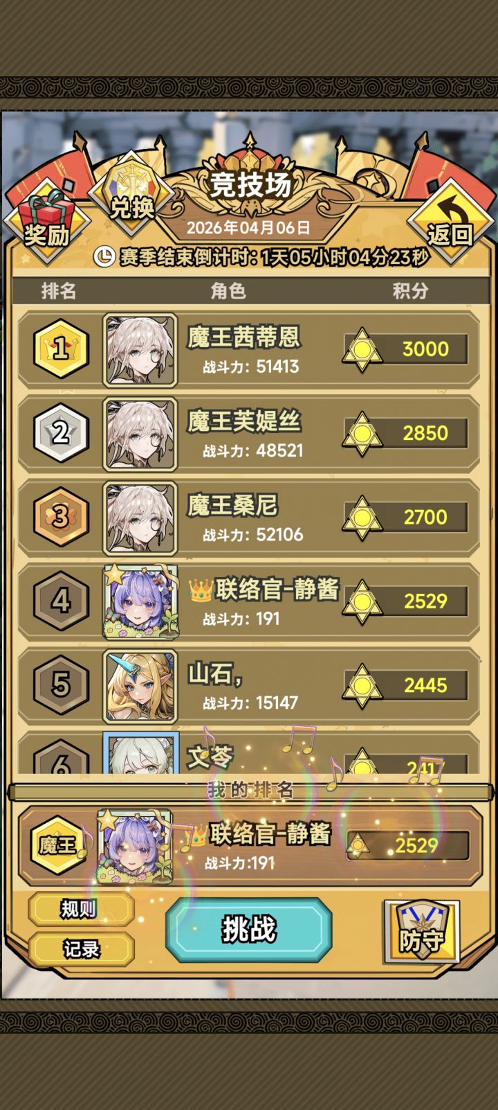 到魔王了~本周竞技场成就达成(•̀ᴗ•́)و̑̑