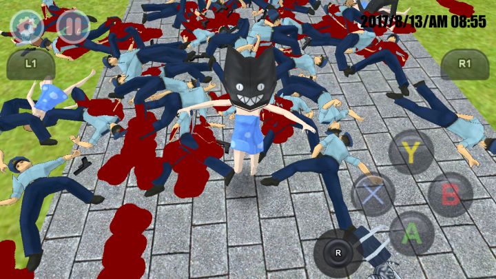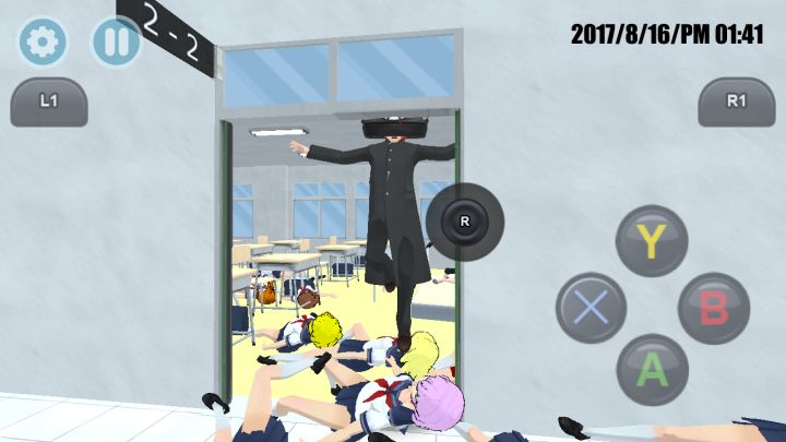 留下你的赞\(≧▽≦)/1.游戏我觉着就是杀人,然后处理尸体。但处理太麻烦了。2.开始游戏后,在左上角的设置里,主角人物可以换衣服,头型等基础外形。也可以选择武器,那里还可以选场景、天气、时间等。不过是英文的。3.在2的设置下面有一个小的好像是l1,这个可以切换call.follow me.hello.byebye.stop.club大概是call召唤全校学生,follow me 是可以让你