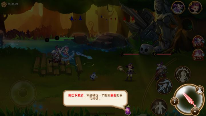 大多数玩家不看新手导引,大家一定要会选择集火目标,也就是右下角的攻击面板上朝个不同方向滑动。