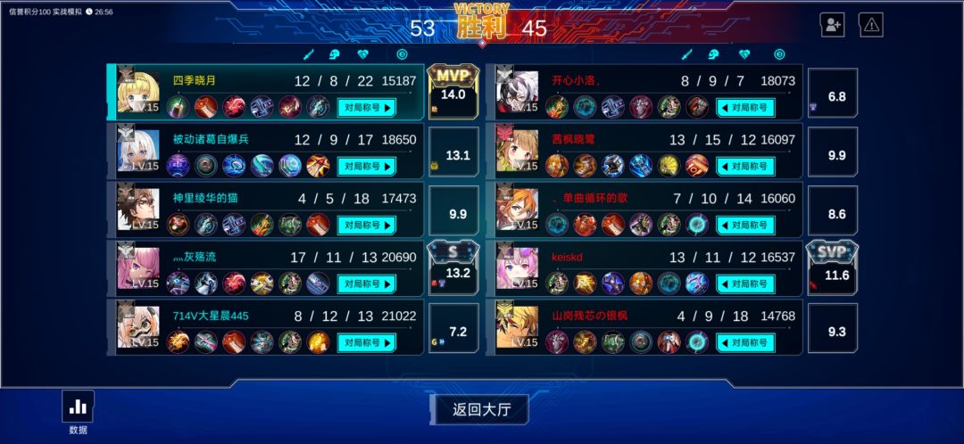 及选位等级排序:下,中下,中,中+,中上,上,上+,极高 复读只因:觉醒单体最高火力担当之一,怕控 选位:中上 半藏:近可速a调戏人,退可挂泉守三线 选位:中下 咻依:跳大三路断兵线,隐身摸你妈见天 选位:中上 伊莎:永恒破碎!!! 选位:中下 贝丝:西湖的雨,最好永远都别停下! 选位:中+ 切西亚:必须着重刷钱,没钱团都不配进 选位:中下 阿市:觉醒t2输出担当 选位:中+ 乐正绫:代代版本代代
