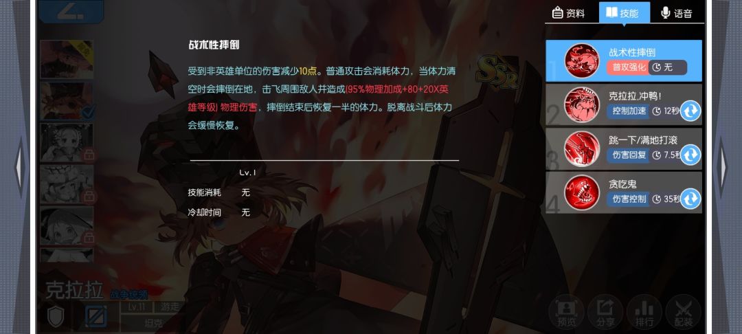 (提示:本攻略纯属娱乐,请勿运用) 警告⚠本内容为阴间攻略,看着乐就行了(除非你想恶心队友) 克拉拉,三百大作战里的一个快乐的英雄,以高移速为主(没三笠快、没追光者快、有时候没尤里快)还有独特的大招吃人迫害敌方视角机制。当然也是个很好的辅助。 上一段纯属废话,现在步入正题 技能: 被动:战术性摔倒:总体来说就是平a减体力,体力空时平a单位可以触发击飞 一技能:克拉拉,冲呀! 增加50%的移速并减少