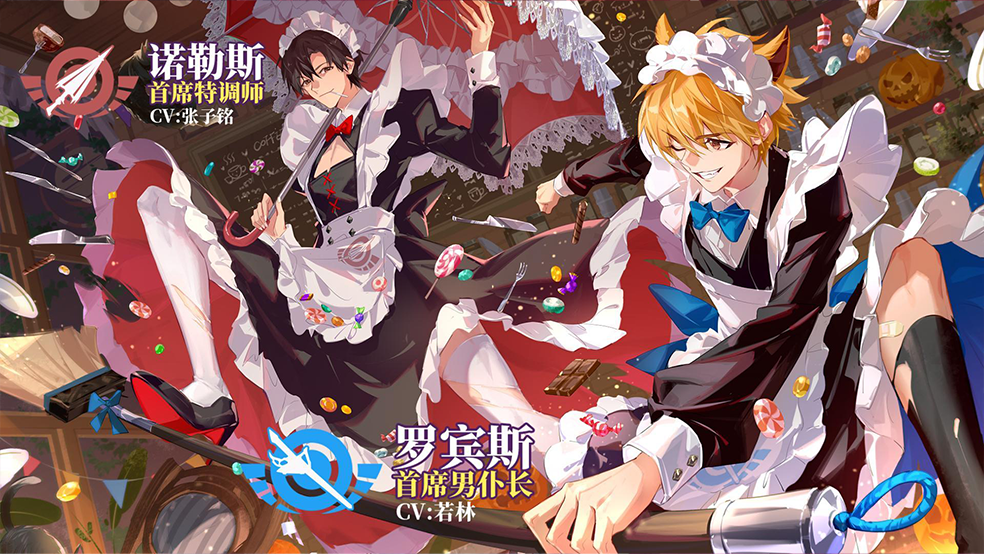 【300大作战】全新皮肤 罗宾斯-首席男仆长皮肤 —————————————————— CV:若林 获取方式:万圣咖啡馆活动获取 —————————————————— 【300大作战】全新皮肤 诺勒斯 -首席特调师 —————————————————— CV:张子铭 获取方式:万圣咖啡馆活动获取 ——————————————————
