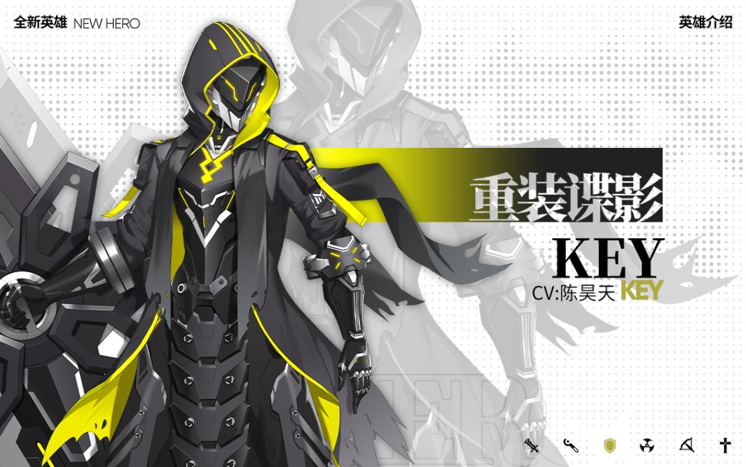 【重装谍影-KEY】 CV:陈昊天 KEY的存在对于天启城来说像是一个传说,出现在各类激烈冲突或是急需解决问题的场合,习惯遮挡面部,来无影,去无踪……让人怀疑他是不是真实存在的人,即便是万象门内部对于KEY的真实面目也都讳莫如深。 KEY在战场上的表现非常的坚韧可靠,训练有素的身体,优秀的战斗技巧,加上特质金属粒子制成的合金战甲,让他不管是速度、力量还是感官都比一般人要强上很多。能拥有KEY作为队友,一定是最让人安心的事。