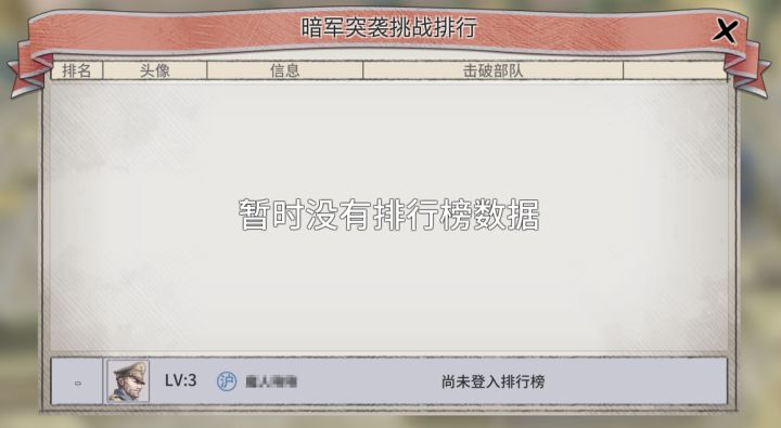 亲爱的各位指挥官,我是火火~ 在上一期的蓝贴中,火火提到了我们全新的一个玩法—挑战关卡,挑战关卡是一个充满了刺激、挑战和策略智慧的内容。快来跟随火火的脚步,来了解下这一独特刺激的玩法吧!【挑战关卡——暗军突袭】恶劣的天气干扰了你的侦查手段,陷入敌军的包围圈后,隐藏在迷雾中的敌军源源不断的涌来….在有限的时间里,你能击破多少敌人?活动时间:周期性开放主要玩法:1. 玩家进去副本地图后,不能