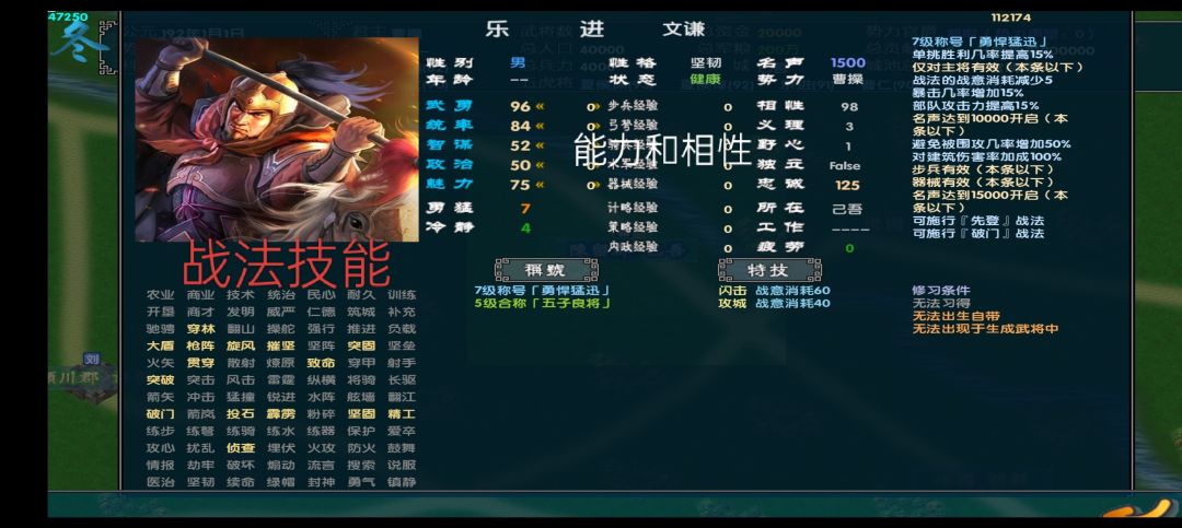 开局 建议开局魏,蜀,吴,袁,刘表,汉等强势阵营,强势阵营可以早期爆兵快速圈地,获得兵员,税收,人才等,弱势或异族常因为将领能力问题需要猥琐发育才能集中优势兵力碾压。 人才 中三人才与其他三国游戏不同,将领有相性和义理,部分将领很在意,记得观察主公相性,差距太大不可登庸,提升声望可以适当放宽,部分天赋也可以无视部分相性差。 发育 接下来发展大城商业(很重要),诸如洛阳,长安,许昌,建业(秣陵),邺