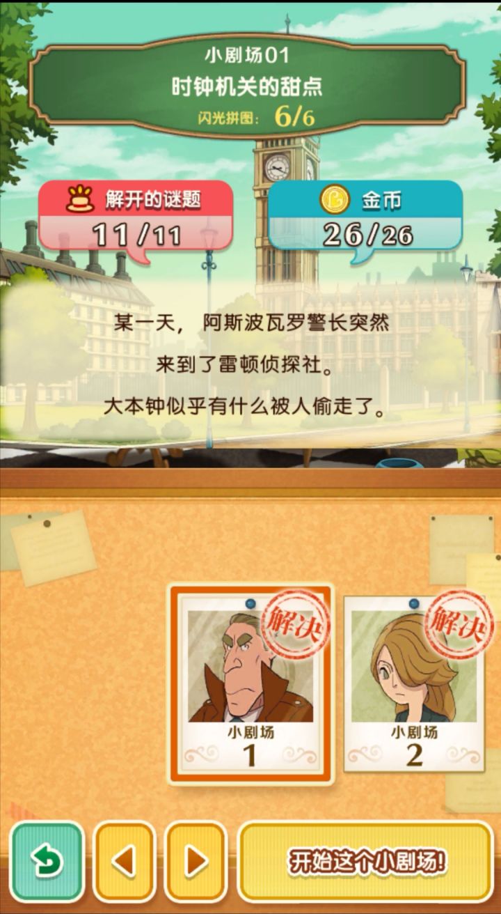 把主线剧情通过了,才发现还有秘密模式可惜找不到雷顿教授前面系列的游戏资源😢