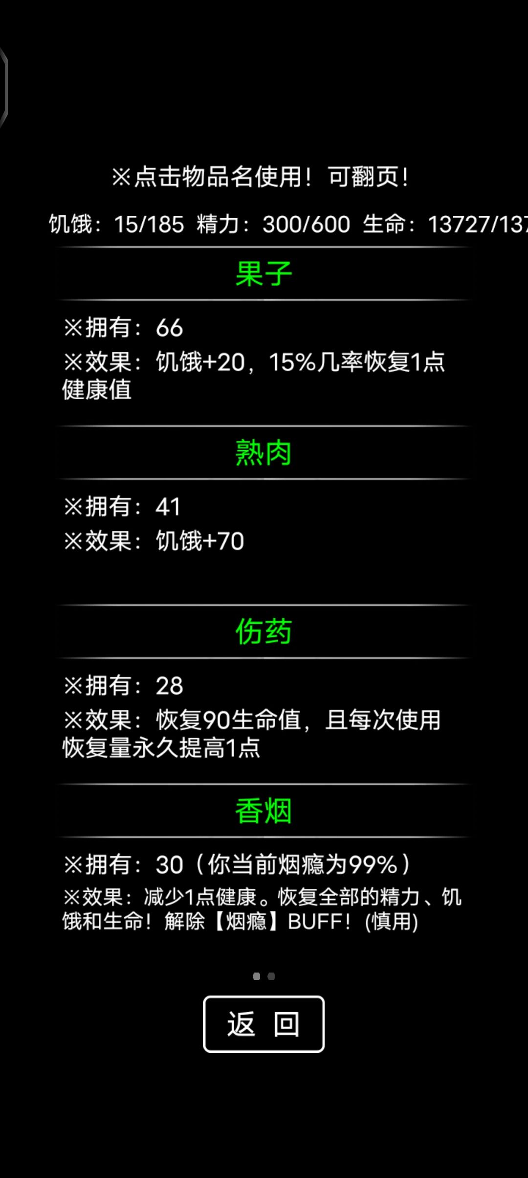 能打赢的别逃跑,打赢的奖励都不错。 没黑刀就升匕首,猛升就行,皮衣什么的不重要。 我之后属性差不多了,170天后精力不用直接睡,要不匕首能到40,打挖掘机记得子弹攒着,十来发够用。