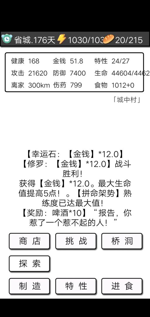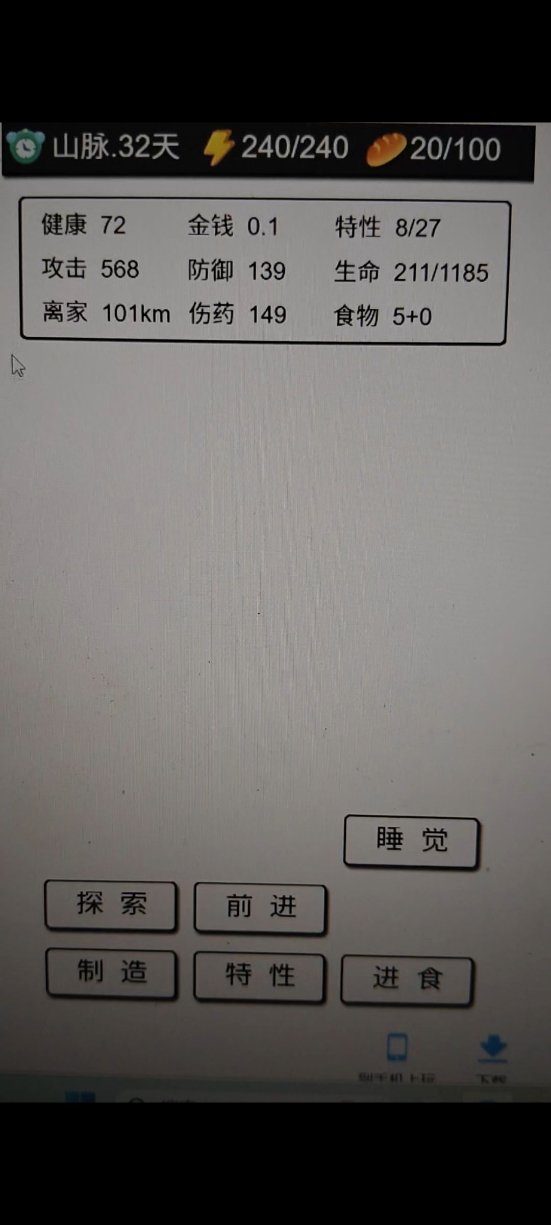 我玩过许多游戏,但最近无聊的很,于是在tap上找些高分的作品玩,没想到找到了这个神作。一开始玩我一点都不会玩,就是乱选乱玩,当然是惨的很。 因为自认为是个大佬,所以一开始就没打算玩新手的难度,然后我开始受苦了。 一开始我犯了大多数新手的通病,不会计算和合理分配资源,这个尤为重要,因为这个原因,前期荒野中的很多小怪我都打不过,然后导致我一进城还没了烟肉,心态血崩,前期不好,导致第二次我又没了肉烟,城