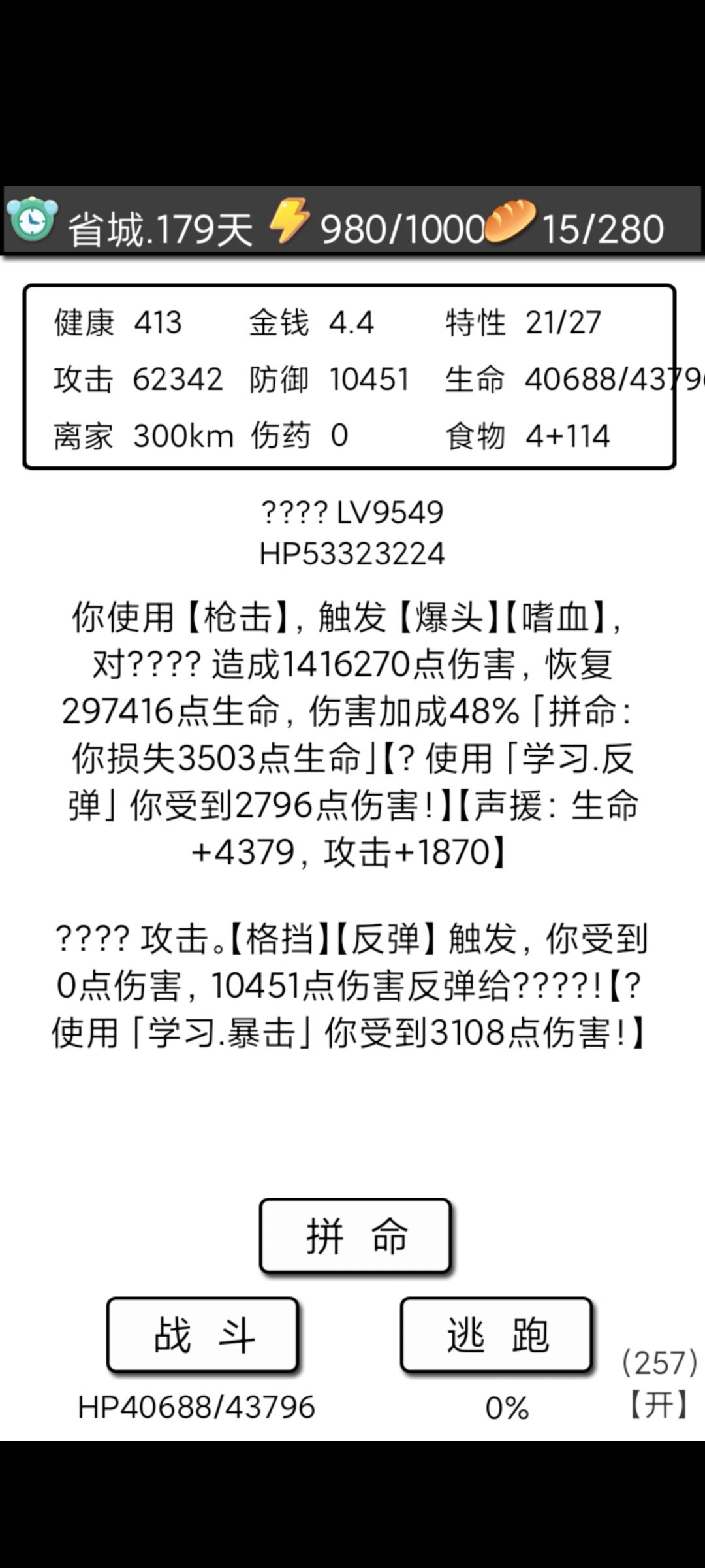 新手模式,刷的难受。 结局属性:攻击2500 血量12000 暴击60 格挡60(只有麻布衣的格挡概率有上限) 反伤100 黑刀5级 枪1级(被陈晓摸走了二级枪) 以下说一点个人对于论坛里的新手模式攻略的补充,仅个人见解: 1。开局建议先升级木棍和麻布衣到四五级,如果先升帐篷的话前期谁都打不过,一直逃跑或挨打,不利于开特性,也拿不到胜利后的属性点,前期属性点的效果非常明显,而且可以攒食物和蚊子尸体