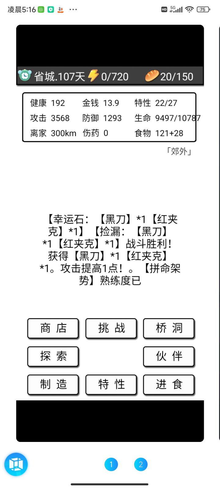 总体过程打的很烂荒野:五级帐篷过县城:前面猛猛出黑刀,后面刷不出来只拿了一把就被赶出来,第一次还没打过胡渣男,但至少后面他和刀疤男都过了山脉:只打了11只山脉巨人,升到了三级,红夹克才二级,发育的烂的要死,晓月才刷600多好感省城:碧瑶线整的烂的要死,山洞50米过后就打不过了,后面除了猫猫,结果就凑了个160好感就没了,皮装男第一次打被暴打,第二次因为枪没子弹也没打过,流浪汉(毒)因为同归